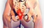 - ноющая боль в лобк «отдает» в область таза, промежности, бедра, копчика;