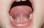 - белый налёт на языке, обволакивает весь центр языка;