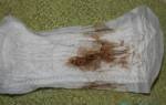 - Наличие темных грязных выделений с кровавыми сгустками и жидкой консистенцией.
