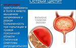 Острое воспаление мочевого пузыря и уретры может привести к сильному отеку слизистых, перекрытию шейки и сужению мочеиспускательного канала. Мочеиспускание становится частым и вымученным. Сопровождается сильным мышечным напряжением, спазмами, болями внизу живота и в члене, выделениями из уретры. Нередко в моче появляется кровь. Может подняться температура.